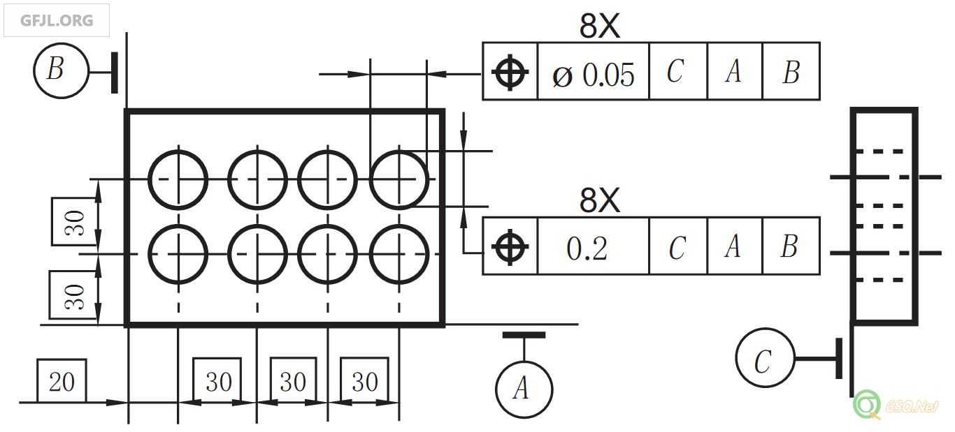 回復 5# yj407 版主有沒有注意到兩個位置度的公差帶形狀不一樣哦,對于0.2的這個位置度應該怎樣理解呢?是指的孔德軸線嗎? |