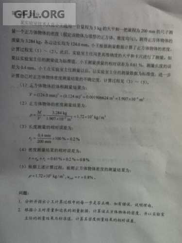 2013年一級案例分析題題綱 第1題:考核評審,考評員現場提問,讓檢定員回答了大概10個還是14個問題,每個問題回答的都有錯誤,比如計量技術法規包括哪些,題目不是很難,但是量太大; 第2題:新建計量標準考核,該標準可以檢定A、B、C三種儀表,其中B、C給出了最大允差,A給出了測量不確定度,考核發現有重復性和穩定性等考核方法的錯誤,讓大家指正,最后還有個測量一致性的問題,是給出第一次測量結果和一個月后第二次測量結果,看測量一致性是否符合要求; 第3題:好像是檢定化學方面的儀器,給出了兩個檢定項目的測量列,分別有一處劃改的情況,第一個劃改明顯是粗大誤差,可以直接剔除,第二個劃改要求用迪克遜準則來剔除,出來迪克遜準則,那題其他小問都很簡單,比如求實驗標準偏差等; 第4題:比對題,純文字的,第一問比對實施方案包括哪些內容,第二問下面的比對實施過程中有哪些問題; 第5題:酸度計的問題,有計量單位和不確定度計算,比較簡單,只是評定重復性時所有的測量結果一樣,所以為0,用分辨力代替,與標準器不確定度合成; 第6題:用電壓表和標準電阻測電流,測量模型是I=V/R,有單位名稱和量綱的問題,然后就是求不確定度,給出了電壓測量列、電壓表最大允差和標準電阻擴展不確定度和自由度,三個分量:重復性、電壓表、標準電阻,重復性用貝塞爾(自由度9),電壓表用均勻分布(自由度8),標準電阻查t分布表得到k(自由度已經給出了),都換算成相對不確定度,然后合成,用韋-薩公式得自由度,查表得k值,求擴展。 1. 重復性、電壓表、標準電阻,重復性用貝塞爾(自由度9),電壓表用均勻分布(自由度8),合成后,求V的相對標準不確定度; 2. 標準電阻查t分布表得到k(自由度已經給出了),求R的相對標準不確定度; 3. 根據乘積形式的不確定度傳播定律合成,求I的相對標準不確定度,轉化為絕對的I標準不確定度 4. 用韋-薩公式得自由度,查表得k值,求擴展,over。 |
