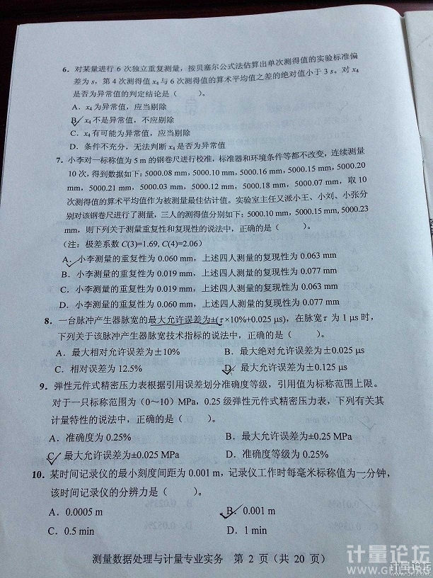 | 第10題選A,數字型指示表分辨率是最小分度值的二分之一。 |