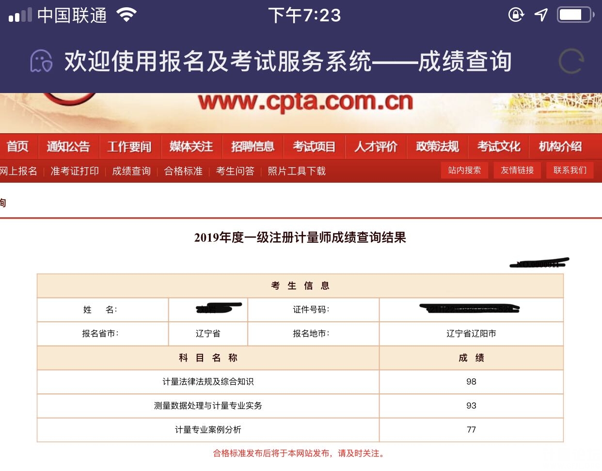 本帖最后由 zhangjmqust6699 于 2019-12-19 09:01 編輯 我全部寫完了,但是有些題目很明顯感覺我自己做錯(cuò)了,但是還是要寫。第二天案例分析,有一個(gè)大題自我感覺肯定有異常值需要剔除,但是無奈水平有限,公式?jīng)]記住,異常值也沒有剔除,只能硬著腦袋寫。 案例分析感覺還是要多寫,管他對(duì)錯(cuò),寫上了沒準(zhǔn)還能得到兩分,不寫,肯定沒分。 我實(shí)際看書沒看多久,最多一個(gè)月,平時(shí)積累很關(guān)鍵。測(cè)量不確定度要入門,然后就簡(jiǎn)單多了。兩本書最多翻了一遍,重點(diǎn)的公式可能看了兩遍。 其實(shí)還是平時(shí)多積累,第一次考注冊(cè)計(jì)量師,通過考試還是看到自己有很多的不足的。像比對(duì)、監(jiān)督檢查、異常值剔除等等,平時(shí)用的很少,所以算起來就很困難。 我也很幸運(yùn),通過了,76,82,88。可惜啊,沒有人報(bào)銷報(bào)名費(fèi),也沒人漲工資。PS:想考72的,可是實(shí)力不允許啊! |