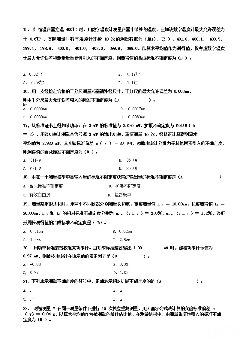 | 首先算出MPEV/根號(hào)3,得出最大允差引入不確定度,再算出標(biāo)準(zhǔn)偏差,因?yàn)槭撬阈g(shù)平均值,標(biāo)準(zhǔn)偏差再除以根號(hào)10,這兩個(gè)結(jié)果合成就行了 |