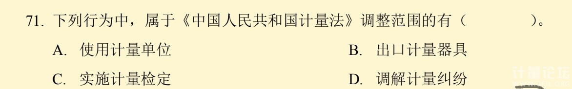 | 《中華人民共和國計量法》的調整范圍:中華人民共和國 境內的所有國家機關、社會團體、中國人民解放軍、企事業單位和 個人,凡是建立計量基準、計量標準,進行計量檢定、制造、修理、 銷售、進口、使用計量器具,使用法定計量單位,開展汁量認證, 實施仲裁檢定和調解計量糾紛,以及進行計量監督管理等方面所發 生的各種法律關系。 |