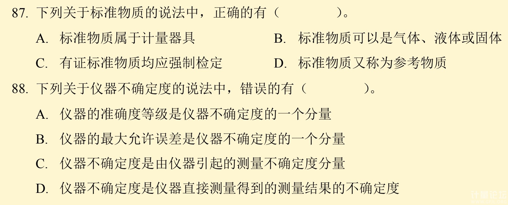 | 88D,最大允許誤差不可以直接測量,C是儀器的測量誤差的定義,我查書118頁看的 87ABD |