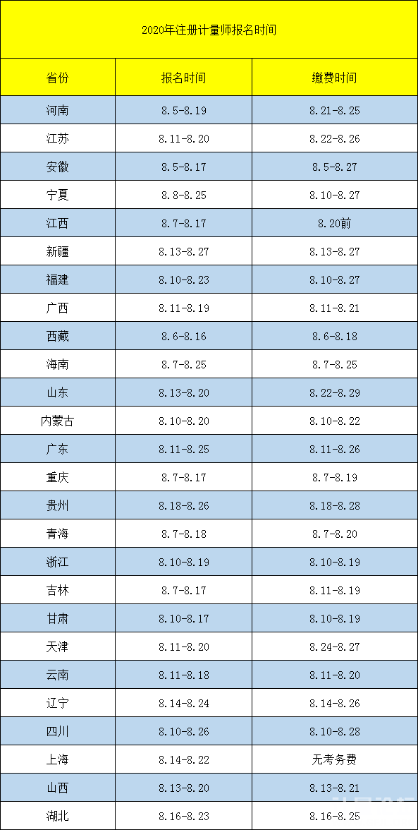 2020年注冊計量師報名時間更新 新增湖北 河北8.15日開始