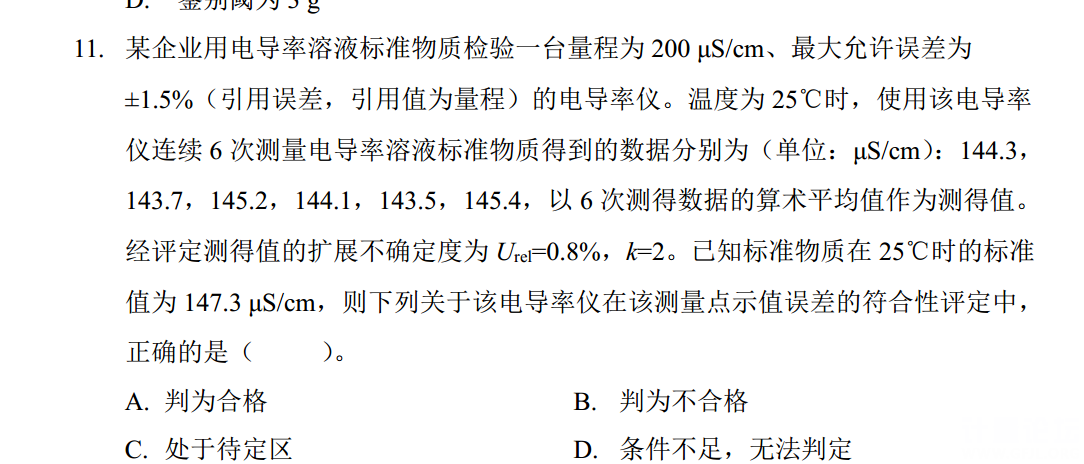 平均值144.4,如果按照簡單接受準則判合格,按U95保護帶Au=144.3+1.2=145.3,不合格 題中沒明確接收準則,無法判定 |