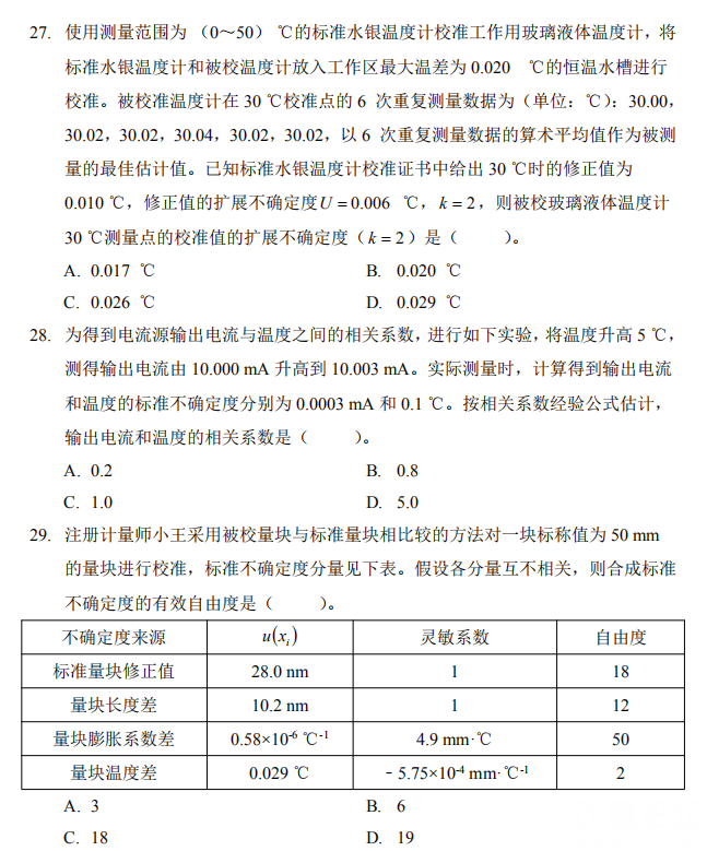 | 28題就是教材243頁的3-77的公式,29題就是有效自由度的公式,27題就3個引入的不確定度 |
