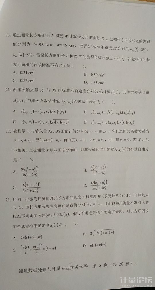 | 19題解題思路,教材中有相關系數為1的合成不確定度計算公式,也可根據不確定傳播規律自己推導。 |