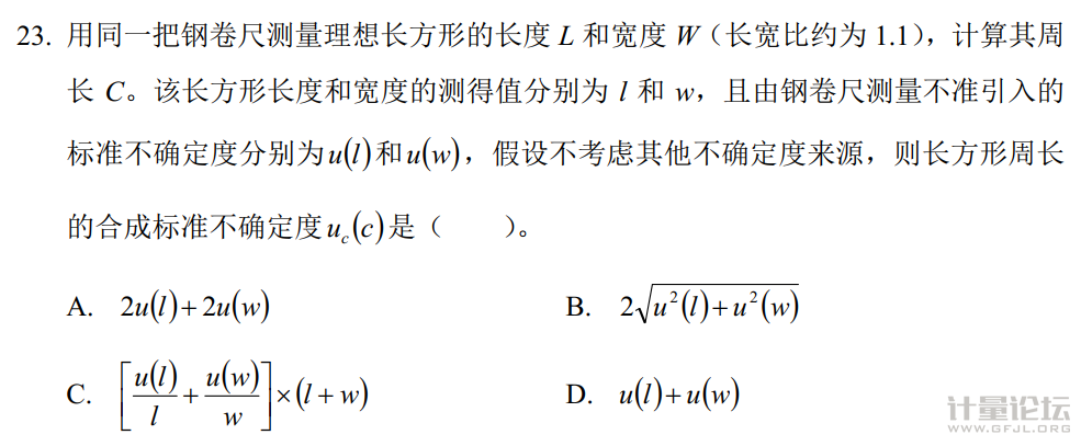 y=2l+2w c1=2 c2=2 u(y)的平方=c1u(l)的平方+c2u(w)的平方 u(y)=B選項(xiàng) 補(bǔ)充內(nèi)容 (2021-4-23 09:01): 這個(gè)錯(cuò)了,謝謝大佬指出問(wèn)題 |