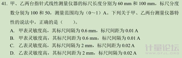 正確答案是D,靈敏度=標尺間距/標尺間隔 |