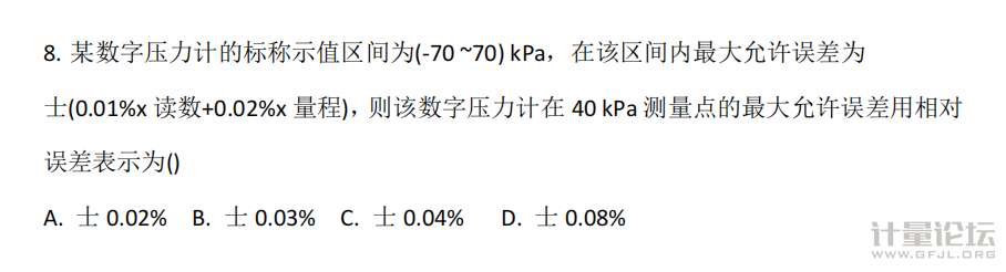 | 應該是C,應該是按70kPa算的滿量程,據此40kPa點相對誤差計算值是0.045%,修約得0.04% |