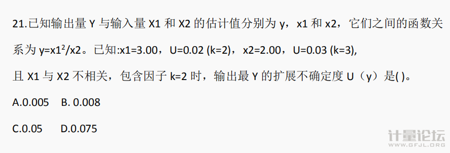 香菇 發(fā)表于 2021-5-20 11:16 這兩道題根據(jù)輸入量不相關(guān)時(shí)的合成標(biāo)準(zhǔn)不確定的計(jì)算公式算的, 首先要確定他們的數(shù)學(xué)模型, 加法模型就是絕對(duì)合成, 乘法模型就是相對(duì)合成, 第一題是加法模型,第二題就是乘法模型, X1的平方乘以X2的負(fù)一次方,然后套公式算吧 |