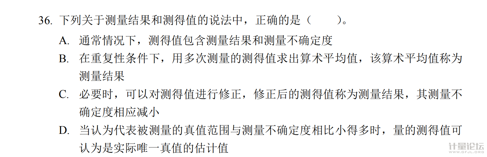首先排除A, 應該是測量結果包括測得值和不確定度。 然后我就不知道了 ,我會選C |