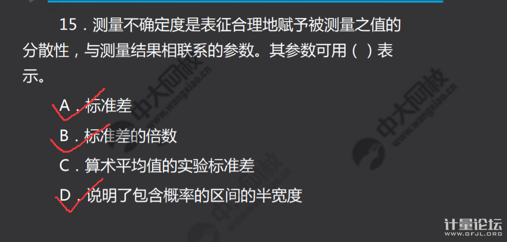 | 標(biāo)準(zhǔn)差指合成不確定度uc,標(biāo)準(zhǔn)差倍數(shù)、和D選項(xiàng)指擴(kuò)展不確定度U,所以是ABD對(duì) |