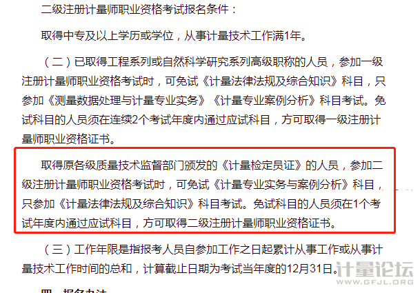 正文摘要:請問,已取得《中華人民共和國注冊計量師 計 量 專 業(yè) 項 目 考 核 合 格 證 明》,是否屬于“原質檢部門頒發(fā)的計量檢定員證”,可否免考專業(yè)實務? ... |