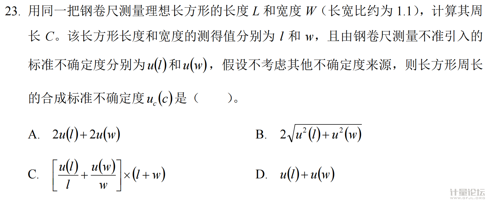 C=2L+2W, u^2=c1^2u(I)^2+c2^2u(w)^2 選B |