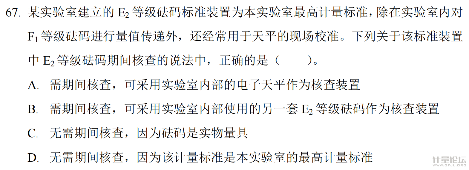 | A不對,因為天平的準確度沒有砝碼高,不能作為核查標準,B是對的,因為雖然砝碼是實物量具,但是題目說了經常要外出檢定,所以要進行期間核查,可以選擇另一套實物量具作為核查標準 |