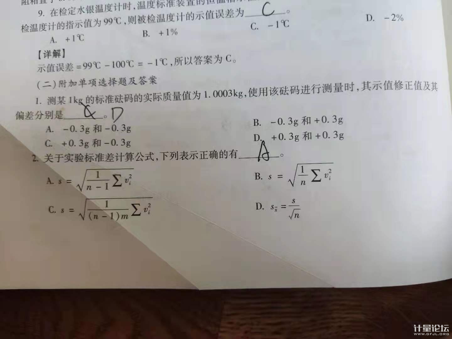 | 1kg是它的標稱值,1.0003kg是它的實際值,示值誤差=標稱值-實際值=-0.3kg。偏差=修正值=-示值誤差=0.3kg。這個不知道的話你現在連書都沒看完。都理解起碼看書2遍 |