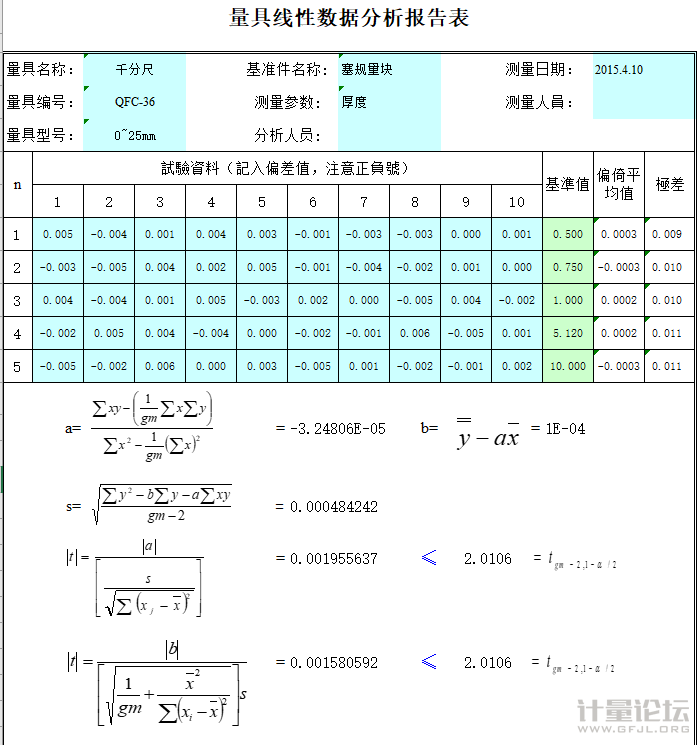 正文摘要:本帖最后由 吳下阿蒙 于 2021-6-25 17:25 編輯 線性分析操作流程:挑5個(gè)樣品(基準(zhǔn)值不同),各測(cè)10次,得數(shù)據(jù)如圖,然后用數(shù)據(jù)求出了最佳擬合線y=a+bx,到這里我都是理解,但后面的公式我不了解,后面的s應(yīng)該是 ... |