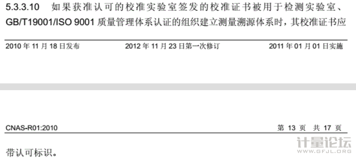 | 5.3.3.10說(shuō)了在什么時(shí)候校準(zhǔn)證書(shū)才需要CNAS證書(shū),所以審核老師和第三方都沒(méi)錯(cuò)啊 |