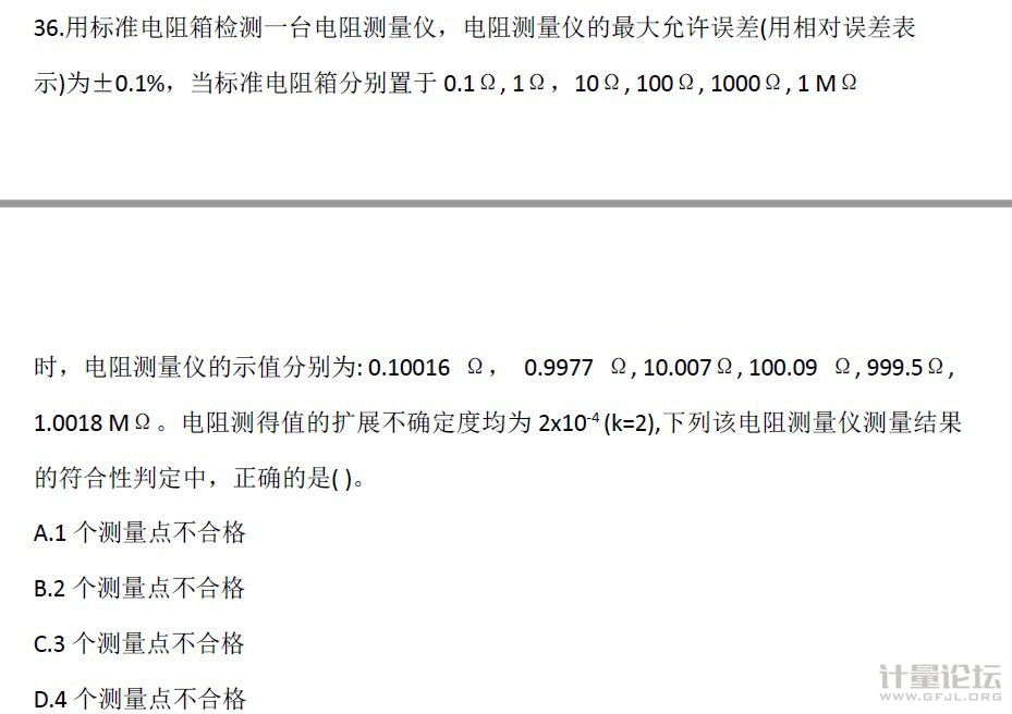 正文摘要:按題要求計算每個點的MPEV,當標準電阻箱為0.1歐姆時的最大允許誤差為±0.0001歐姆,題目里的擴展不確定度是不是不合理啊?我的解題思路是先看是否符合U95≤1/3MPEV,然后按公式給予判定,但是疑問在于最小的0.1是不 ... |