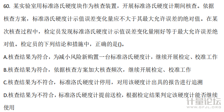 | 應該選C吧,核查結果處于臨界值是因格外引起注意,并停用硬度計,且對以往的報告進行追溯 |