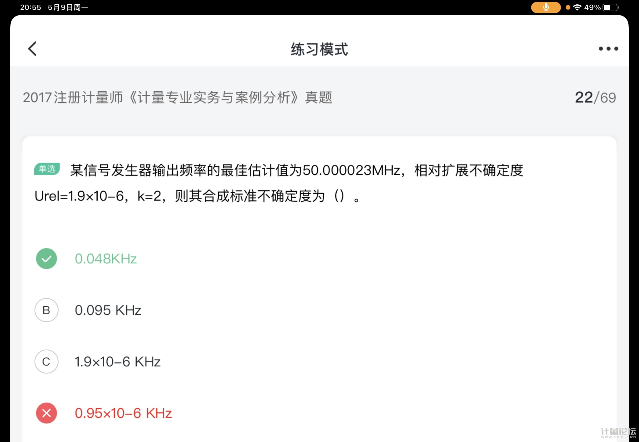 先算出擴展不確定度U=0.095kHz k=2 一除,在修約,0.048 |