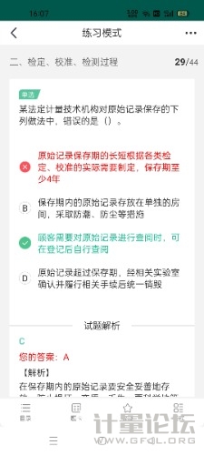 | 這道題是舊題,以前的計量標準的考核時間為4年,原始記錄相當于這個保存期限。去年新的計量標準考核時間改為5年了,所以相應的保存期限也要改動,個人是這么認為的,大家指正 |