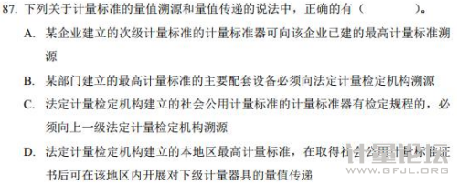 | AD,B是因為企事業(yè)單位最高計量標準的主標準器必須去法定機構溯源,配套設備自己有相關項目標準的可以自己溯源。C是因為最高社會公用計量標準需要向上一級法定機構溯源,非最高的可以向自己的最高社公標溯源的。 |