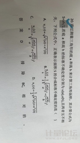 本帖最后由 zuiwumian 于 2022-6-4 14:02 編輯 zjh0339 發表于 2022-6-4 10:13 不管是加法模型還是乘法模型,都是由不確定度傳播率推導出來的。絕對合成不確定度如我4樓給的答案,如果是相對合成不確定度是答案C |