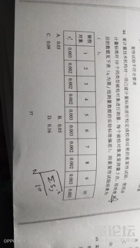 選C,合并樣品偏差不除以根號三,因?yàn)閱柕氖侵貜?fù)性,不是問的由重復(fù)性引入的不確定度 本主題 |
