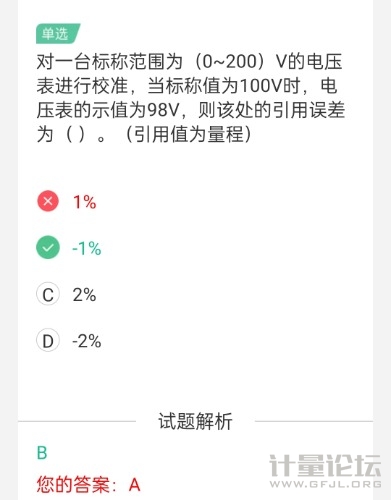 | 是B答案正確,題目標稱值改標準值更合適;對電壓表校準肯定是電壓表的示值是被檢,標準器輸出100v標準電壓, |