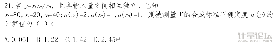 | 我算出來是2.45,相對uC=【(2/80)的平方+(1/20)的平方+(1/40)的平方】然后開根號,得0.061,完了變成絕對的 uc=0.061*[(80*20)/40]=2.45 |