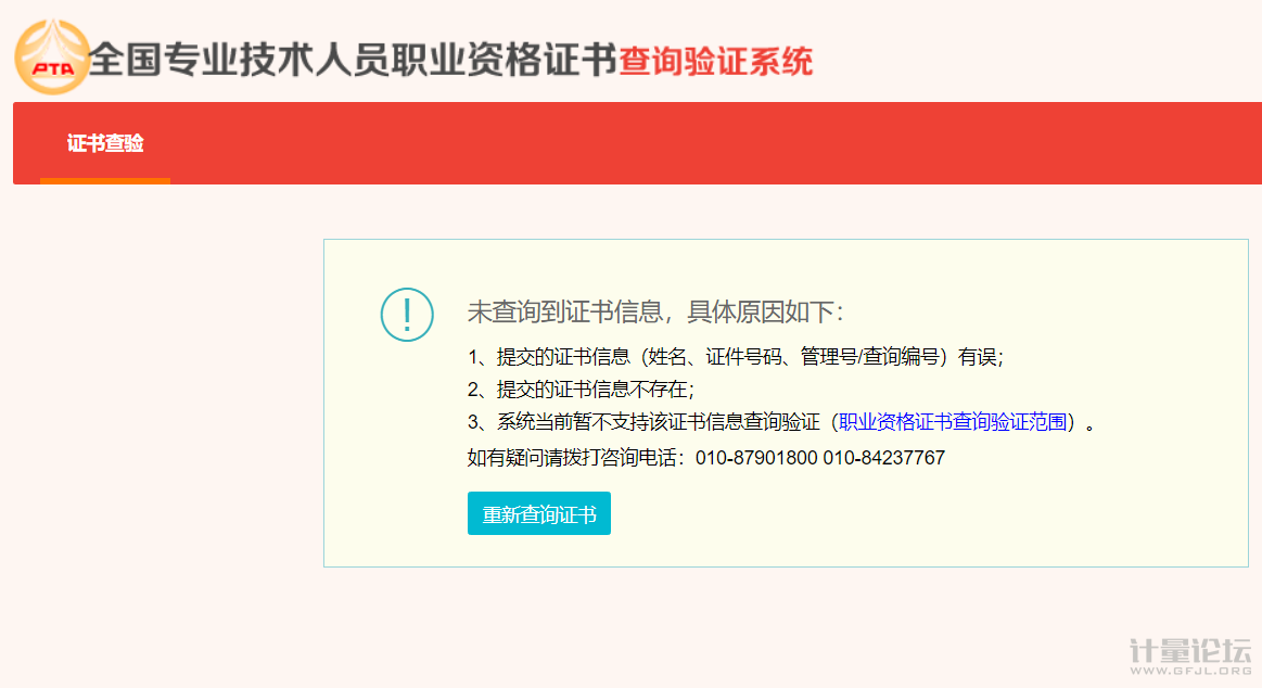 | 你看下后邊有個(gè)查驗(yàn)范圍。二級注冊計(jì)量師自2020年之后才可以查詢,因?yàn)樽?020年后二級計(jì)量師資格證書不是省里發(fā)了,是市監(jiān)總局發(fā)的,所以能查。2019年及以前的二級計(jì)量師證書都是各省自己發(fā)的,只能去各省自己的查詢系統(tǒng)看看有沒有。 |