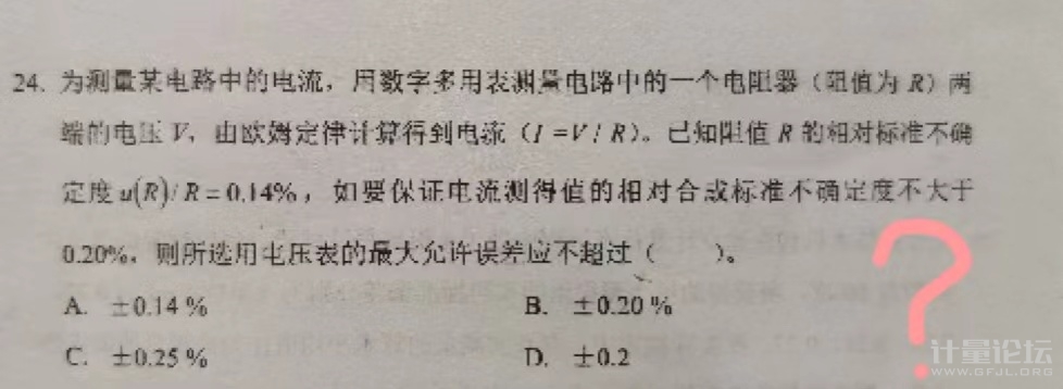 C 就是算 電流的相對(duì)合成不確定度≤0.2% 可以得出,電壓的相對(duì)標(biāo)準(zhǔn)不確定度≤0.143% |