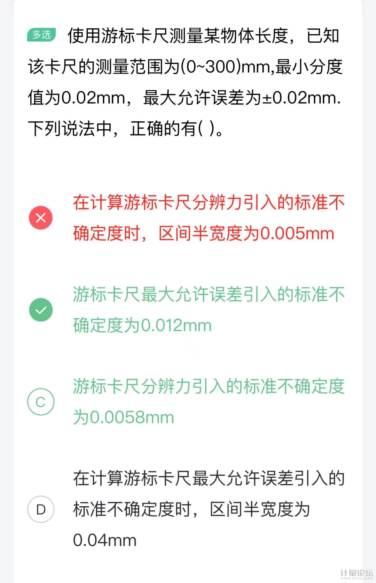 我的答案是AB CD 是錯(cuò)的 A中0.02的一半是分辨力 C還需要再除以2 |