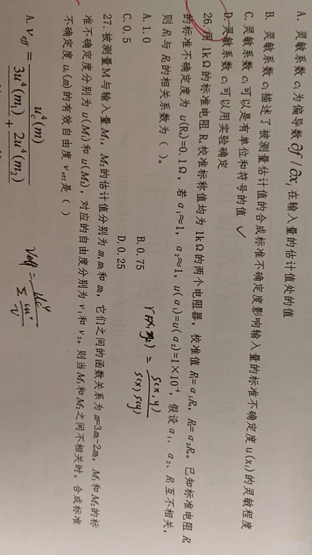 AndLiu 發(fā)表于 2023-4-11 10:20 圖片中給出的是相對公式中左邊分母移項到右邊的乘數(shù)上去了,在原公式上做了一次變型,相當于兩邊同乘一個R1.當然所擬公式兩邊同除一個R1,還原成我們常見的相對不確定度的公式,但一定要記住它有個前提是變量之前是相乘關(guān)系。確實一眼無法看出來,不好意思 |