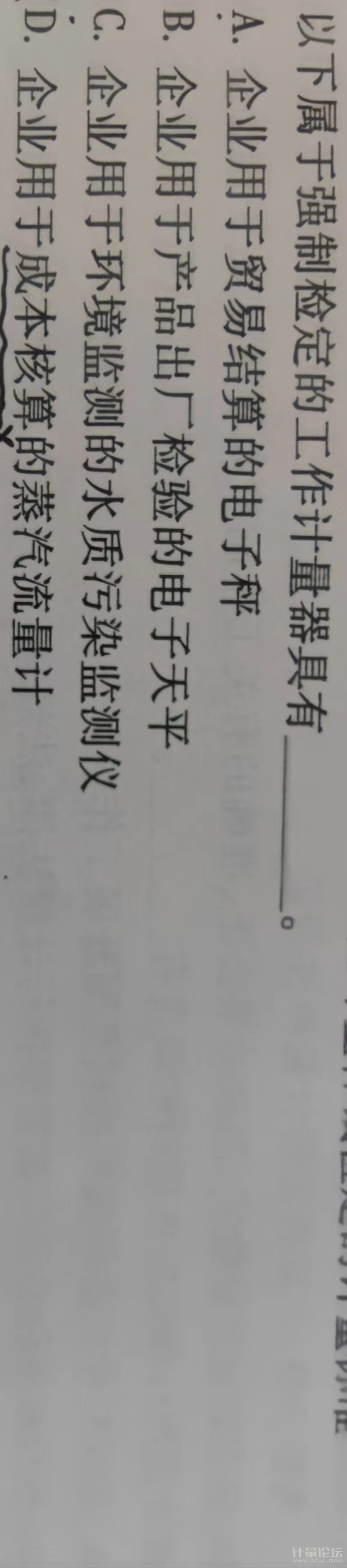 | 計(jì)量法里面有規(guī)定,用于貿(mào)易結(jié)算,環(huán)境監(jiān)測(cè),醫(yī)療衛(wèi)生,安全防護(hù)的計(jì)量器具需要強(qiáng)檢。你判斷一下就可以了。AC |
