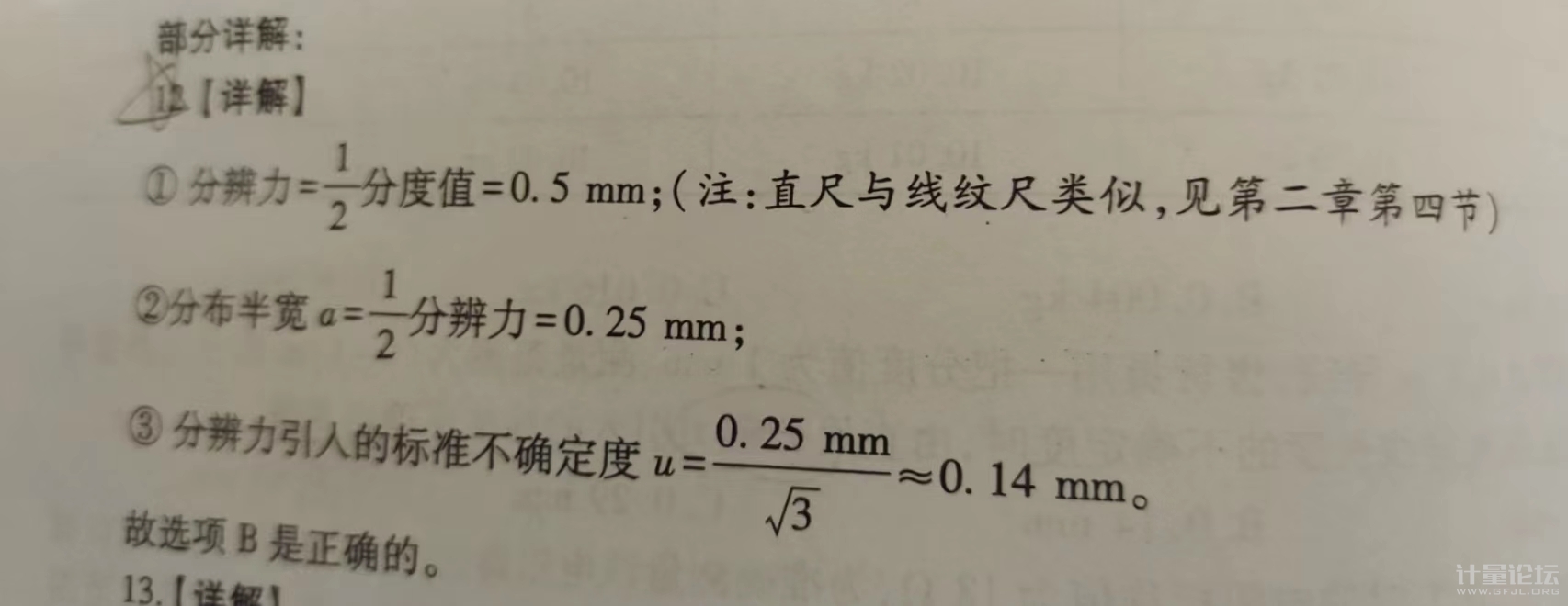 正文摘要:這個直尺的分辨力是分度值得一般,應(yīng)該是0.5mm,算b類不確定度時候,直接除以根號3應(yīng)該就可以了,為什么還要再除以2,不是只有數(shù)字顯示裝置的分辨力為1個數(shù)字所代表的量值δx,才取a= δx/ 2。如圖3 ... |