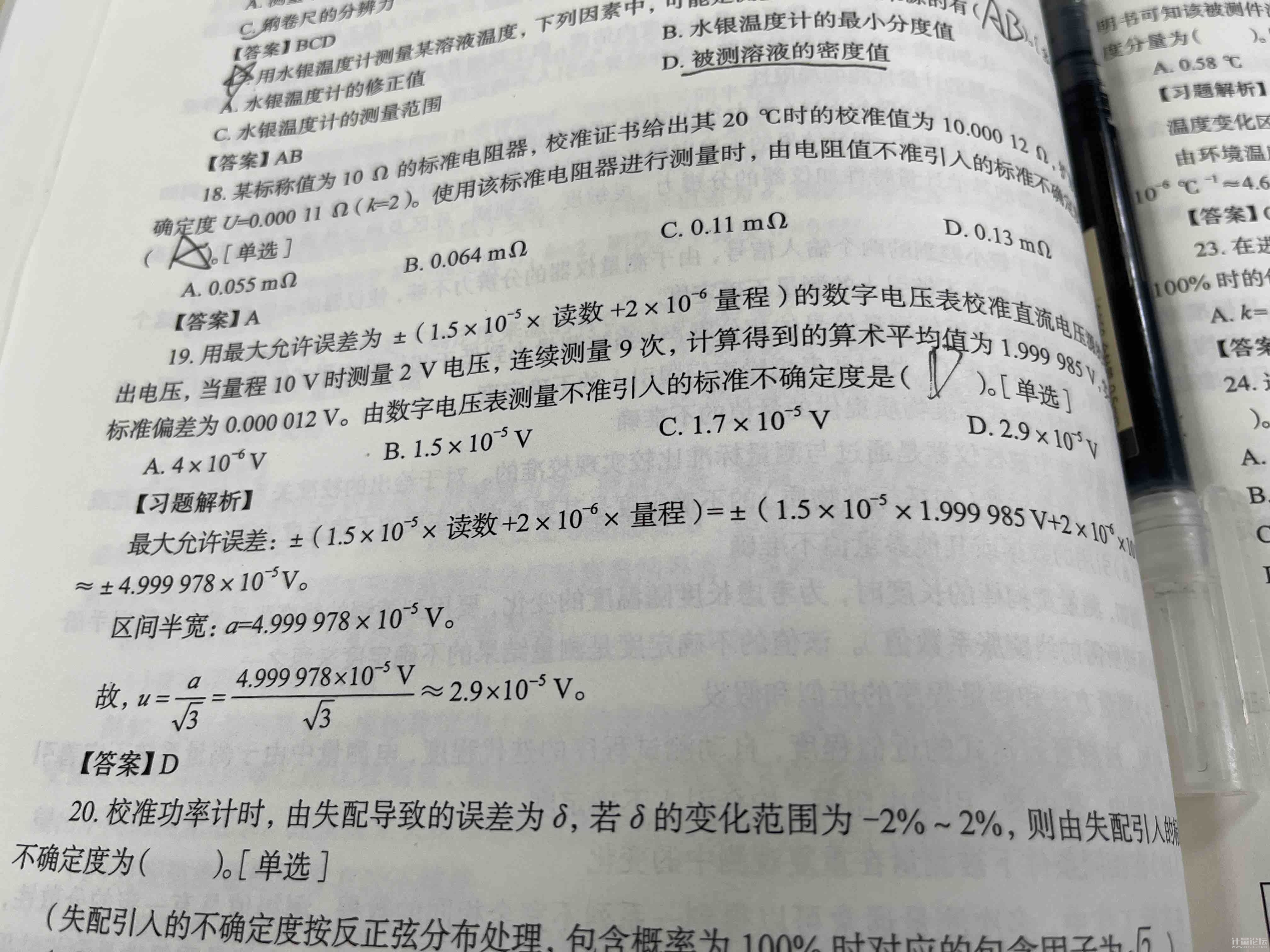 增增增 發表于 2023-5-15 21:48 您這結果應該是直流電壓的校準結果的不確定度,題目問的是數字電壓表引入的不確定度,考慮最大允許誤差即可。 |