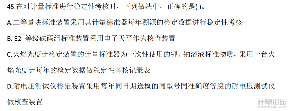 | 9#說的對(duì),題目說的是計(jì)量標(biāo)準(zhǔn)穩(wěn)定性考核,并不是說期間核查,穩(wěn)定性高實(shí)物量具不需要做期間核查 |