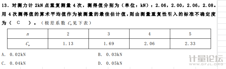| 請(qǐng)教各位大佬,這道題不應(yīng)該是平均值/極差系數(shù)C4=0.024kN,然后約等于0.02kN,所以選A嗎?為什么答案是C呢 |
