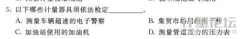 計量法要求“縣級以上人民政府計量行政部門對社會公用計量標準器具,部門和企業、事業單位使用的最高計量標準器具,以及用于貿易結算、安全防護、醫療衛生、環境監測方面的列入強制檢定目錄的工作計量器具,實行強制檢定。” “砝碼、天平、秤、定量包裝機、稱重傳感器、軌道衡、檢衡車、臺秤檢定器、量器、量提、注射器、計量罐、計量罐車、加油機、售油器、容重器、密度計、酒精計、乳汁計、糖量計、鹽量計、壓力計、壓力真空計、氣壓計、微壓計、眼壓計、血壓計、壓力表、壓力真空表、微壓表、壓力變送器、壓力傳感器、壓力表校驗儀、血壓計檢定器、真空計、流量計、水表、煤氣表、明渠流量測量儀、流速計、流量二次儀表、流量變送器、流量檢定裝置、標準體積管、水表檢定裝置、硬度塊、壓頭、硬度計、測力機、測力計、扭矩機、扭矩計、拉力表、力傳感器、沖擊試驗機、疲勞試驗機、拉力試驗機、壓力試驗機、彎曲試驗機、萬能材料試驗機、抗折試驗機、無損檢測儀、杯突試驗機、扭轉試驗機、高溫蠕變試驗機、木材試驗機、強力計、應變儀、應變儀檢定裝置、引伸計、應變計參數測量裝置、應變模擬儀、振動檢定裝置,振動臺、沖擊檢定裝置、沖擊試驗臺、加速度計、測振儀、振動沖擊測量儀、振動傳感器、速度傳感器、重力儀、轉速表檢定裝置、速度表、測速儀、轉速表、里程表、里程計價表、里程計價表檢定裝置。” 測速儀、加油機在目錄里,集貿市場電子秤不在里面。 |