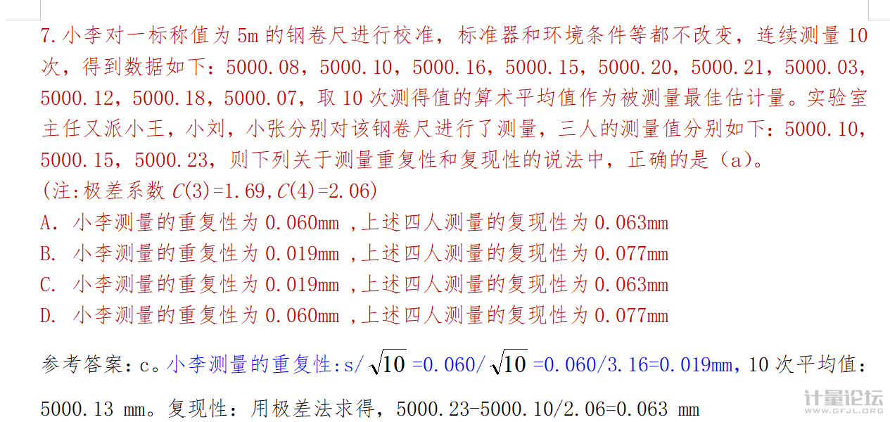 正文摘要:第一個(gè)小李的測(cè)量結(jié)果是平均值作為最佳估計(jì)值,第一個(gè)重復(fù)性的答案除了根號(hào)10,準(zhǔn)題庫(kù)的答案沒(méi)有除 |