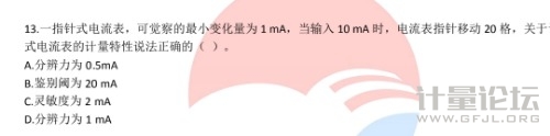 思之無味 發表于 2023-6-7 11:08 按定義,分辨力引起(儀器)相應示值產生可覺察到變化的被測量的最小變化。 題中最小變化是1ma,分辨力就是0.5ma,10ma移動20格,說明一格子0.5ma,但沒有說能察覺到最小變化是0.5ma 所以分辨力是0.5ma,鑒別閥是1ma |