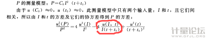 本帖最后由 lijun123456 于 2024-2-26 09:21 編輯 I 與t 都與Rs 有關,I 與t 的兩個標準不確定度分量是相關,它們的協 方差u(I,t)可根據下式求得:u(I,t)=C1*C2*u^2,C1求導I=Vs/Rs;C2求導,t=αβ2Rs2-t0。 u(I,t)=-2I(t+t0)/ Rs^2*u^2(Rs),這不是嗎? 不過你說少了一個/號是哪里啊,半天沒有看明白 , 補充內容 (2024-2-26 14:18): 不好意思,看錯了,它就是利用2ui*uR*r(r.t),c1c2做的。我推的最后不是這個答案 |