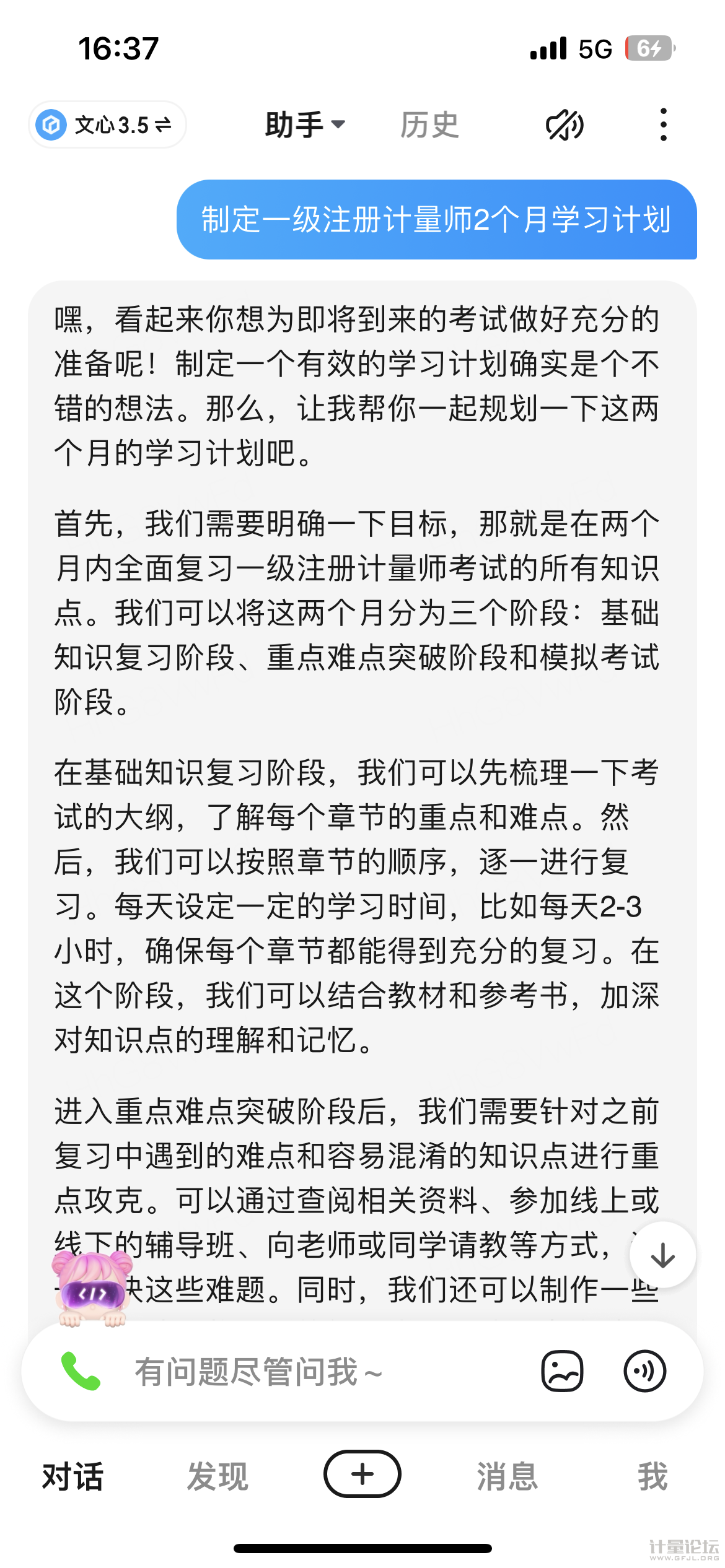 百度文言一心給的一級注冊計量師備考計劃。感覺挺不錯的。