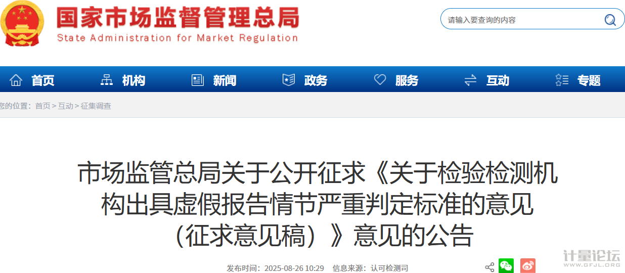 正文摘要:本帖最后由 新聞專員 于 2025-8-26 21:18 編輯 為依法嚴肅查處檢驗檢測機構偽造檢驗檢測數據、結果或出具虛假檢驗檢測報告的違法違規行為,統一監管執法尺度,市場監管總局組織起草了《關于檢驗檢測機構出具 ... |
